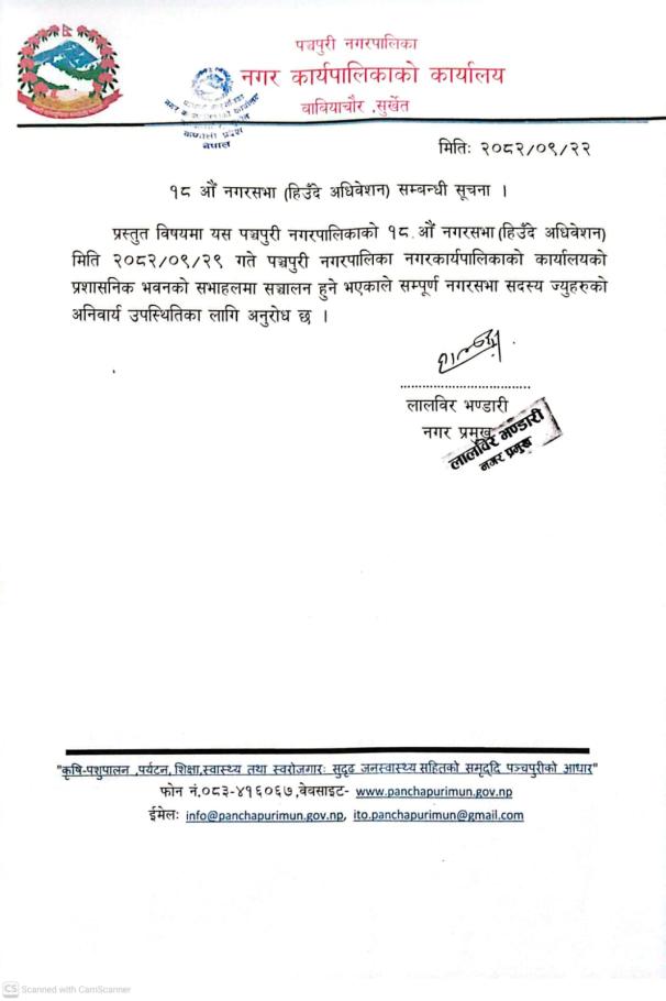 १८ औँ नगरसभा (हिउँदे अधिवेशन) सम्बन्धमा ।